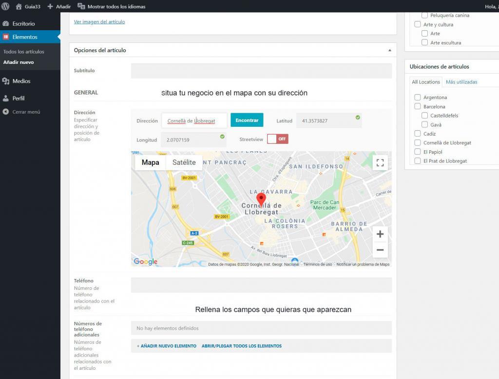 Valida la dirección en el mapa y acaba de rellenar todos los campos