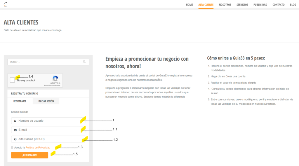 Cómo darse de alta en Guia33