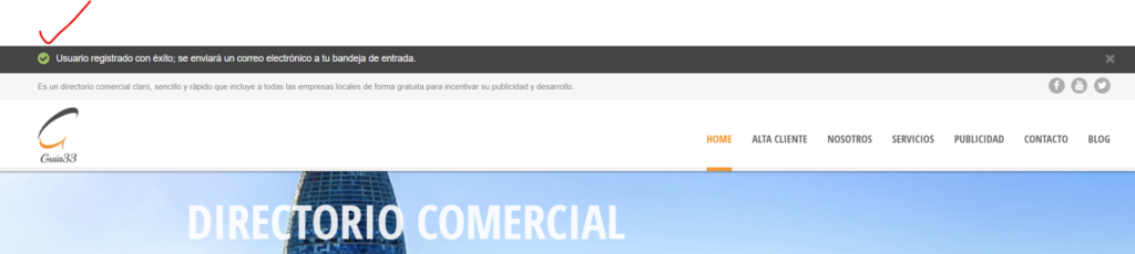 Si todo ha ido bien aparecerá en la cabecera de la Web que has sido registrado con éxito: