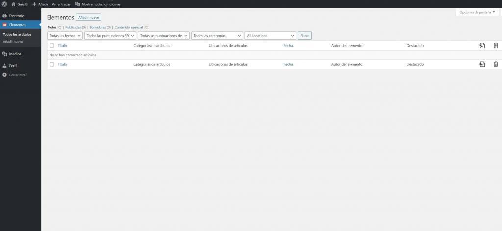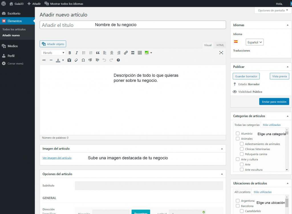 4.- Entra y en el panel de la izquierda clica en Elementos y luego en Añadir nuevo: