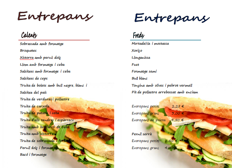 Esmorzars / Cafés / Entrepans freds i calents.