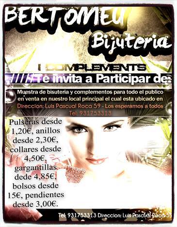 Bertomeu Bijuteria Complements Sant Boi De Llobregat. Todo tipo de complementos para todos tus looks, desde el más casual al más sofisticado: bisutería, bolsos, cinturones, anillos, collares… y mucho más. Sus productos están al alcance de cualquier bolsillo. La variedad y cantidad que encontrarás de cada artículo es enorme y siempre al tanto de las últimas tendencias