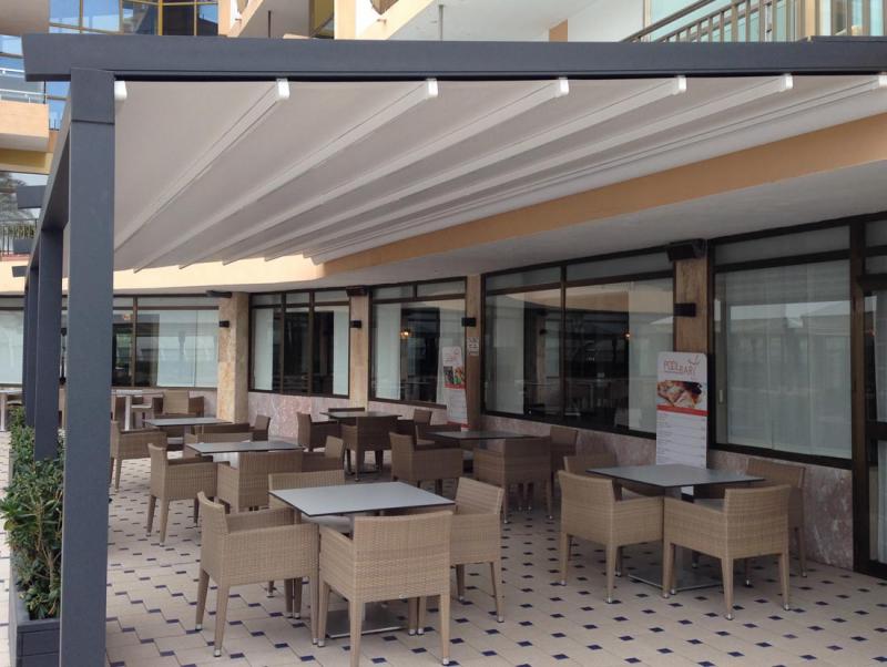 También trabajamos con motorizaciones, tanto con interruptores como con mando a distancia, con la posibilidad de que con un sólo mando pueda abrir y cerrar diferentes toldos a la vez. Además, ofrecen la posibilidad de incorporar el automatismo de protección de viento, para que se cierre el toldo automáticamente cuando nosotros creamos conveniente, no teniendo que estar pendientes de cerrar el toldo al salir de casa..